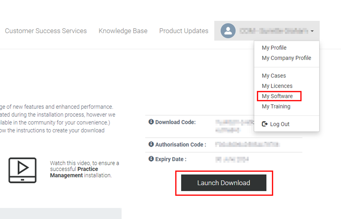 You must have the firm champion delegation on the success community to access the My Software menu in order to download your software. Click the “Launch Download” Button.