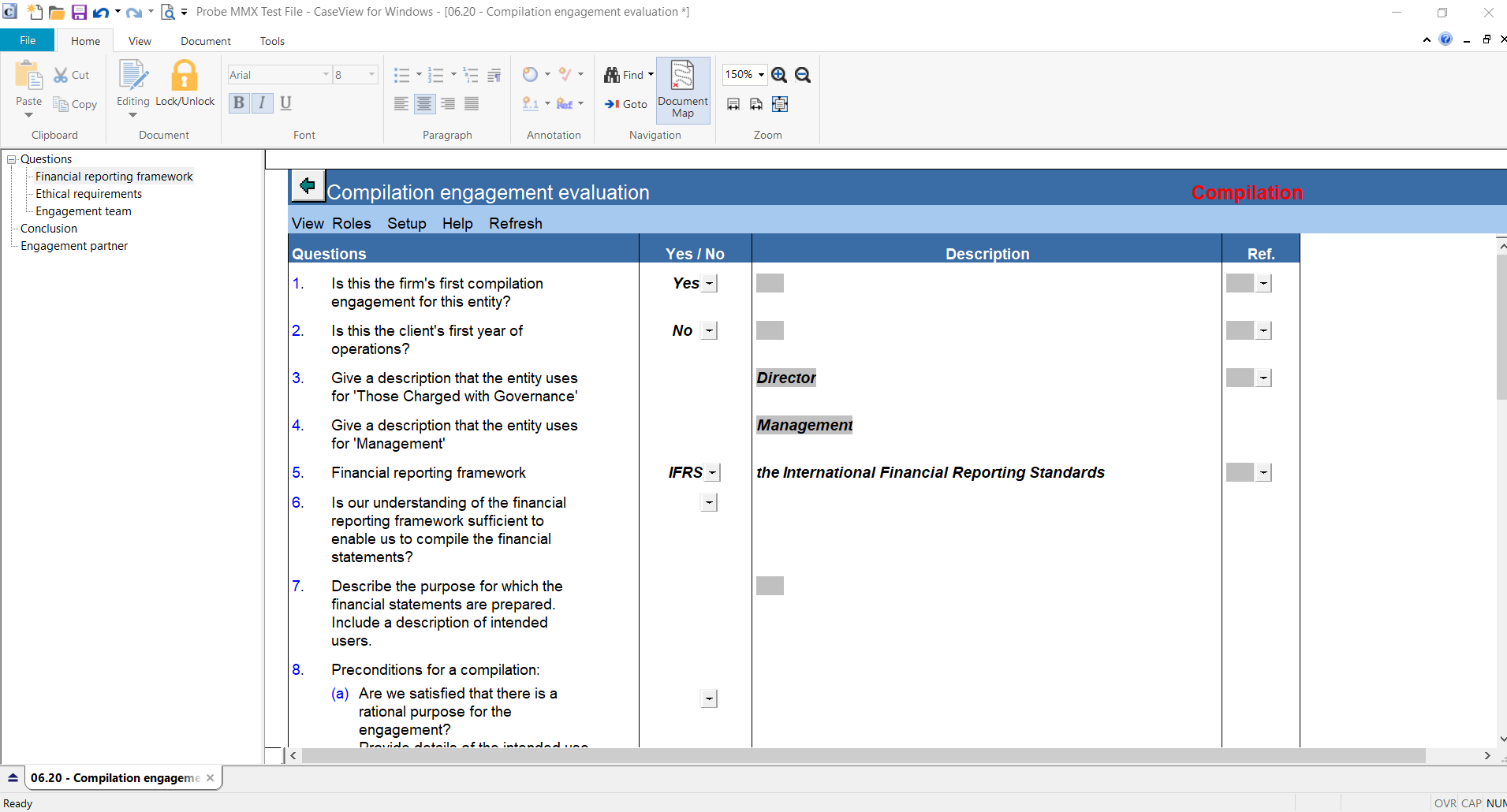 | Ref. | Insert a reference, if necessary, to supporting documentation or other documents within your Caseware file, you can click on the dropdown box to reference to a document already in your Caseware file. | By inserting references to work performed on other working papers you ensure that your file is logical and demonstrates compliance with ISAs. |