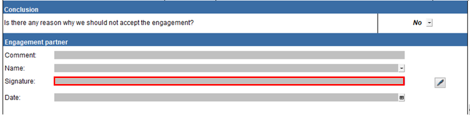 | Yes/No | Answer the question by selecting with the "Yes / No" drop-down box. | By answering the questions your engagement will be tailored and further questions in the engagement file will be shown/hidden. |