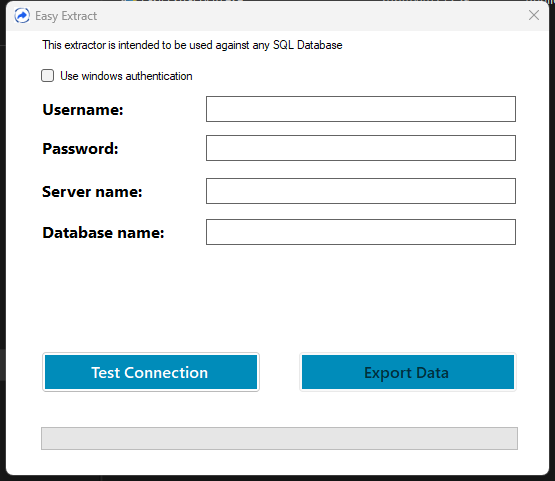 If “Use Windows authentication” is ticked, then a username and password do not need to be provided.
