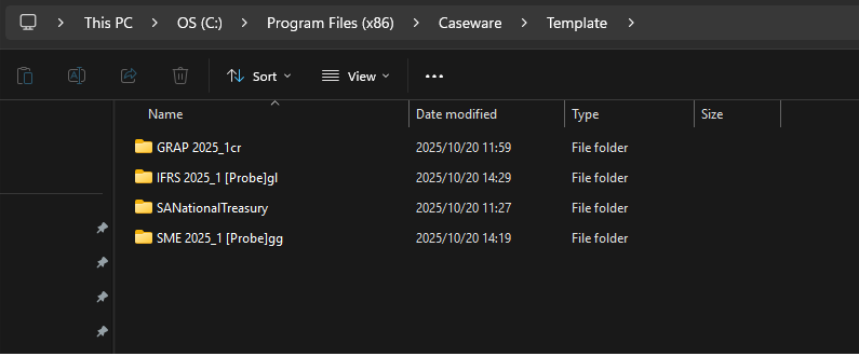 In Windows file explorer go to your Caseware directory. Usually C:\Program Files (x86)\Caseware\Template\