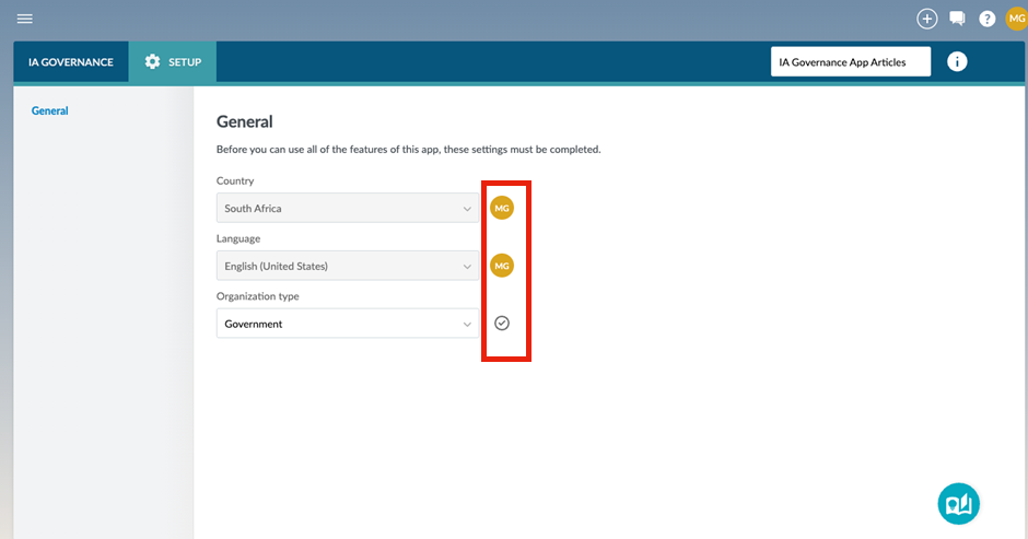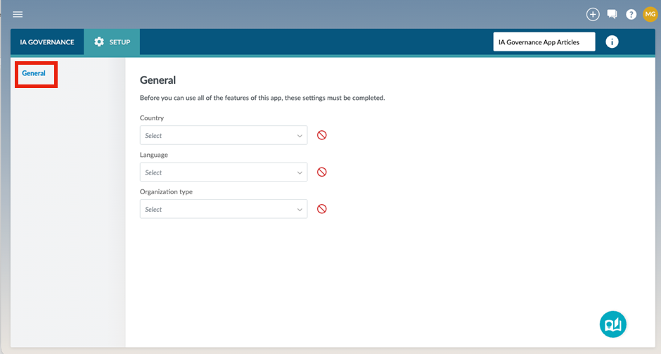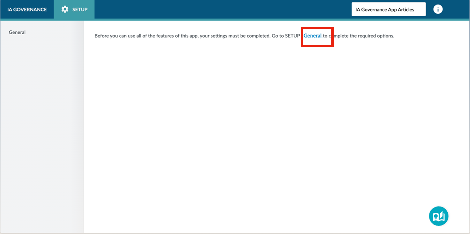 SETUP | General can be found on the sidebar within the SETUP module of the IA Governance app.