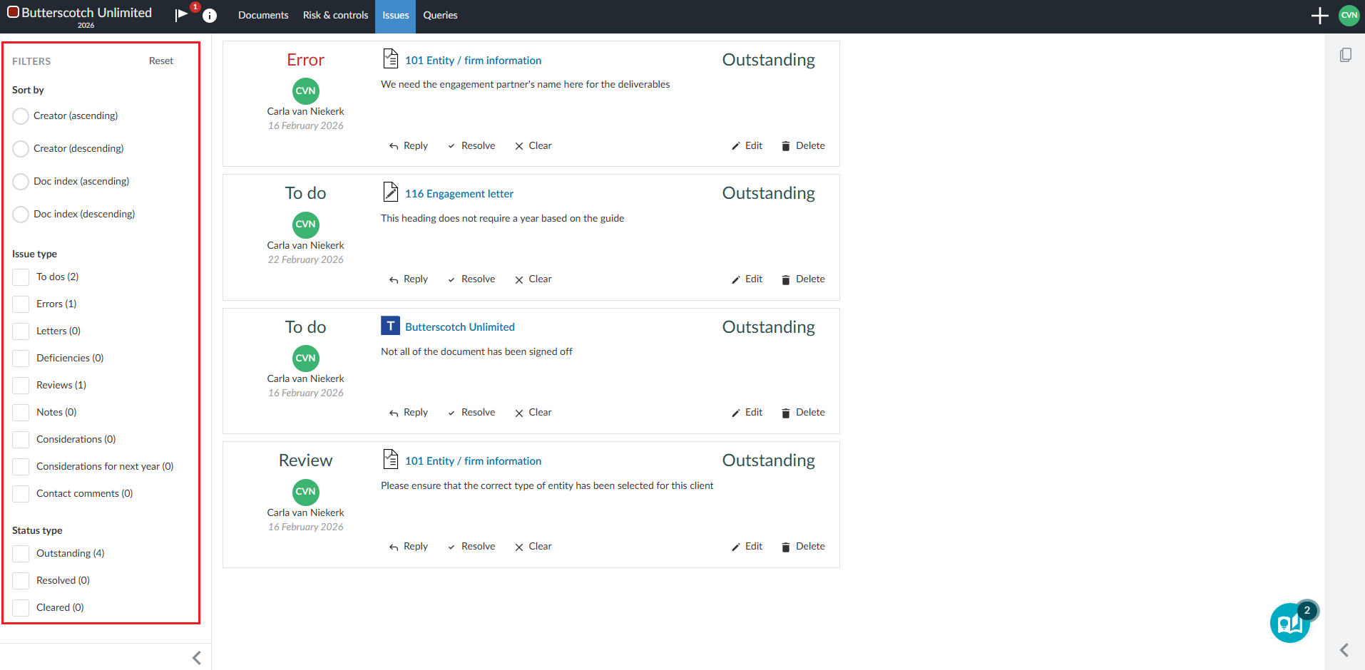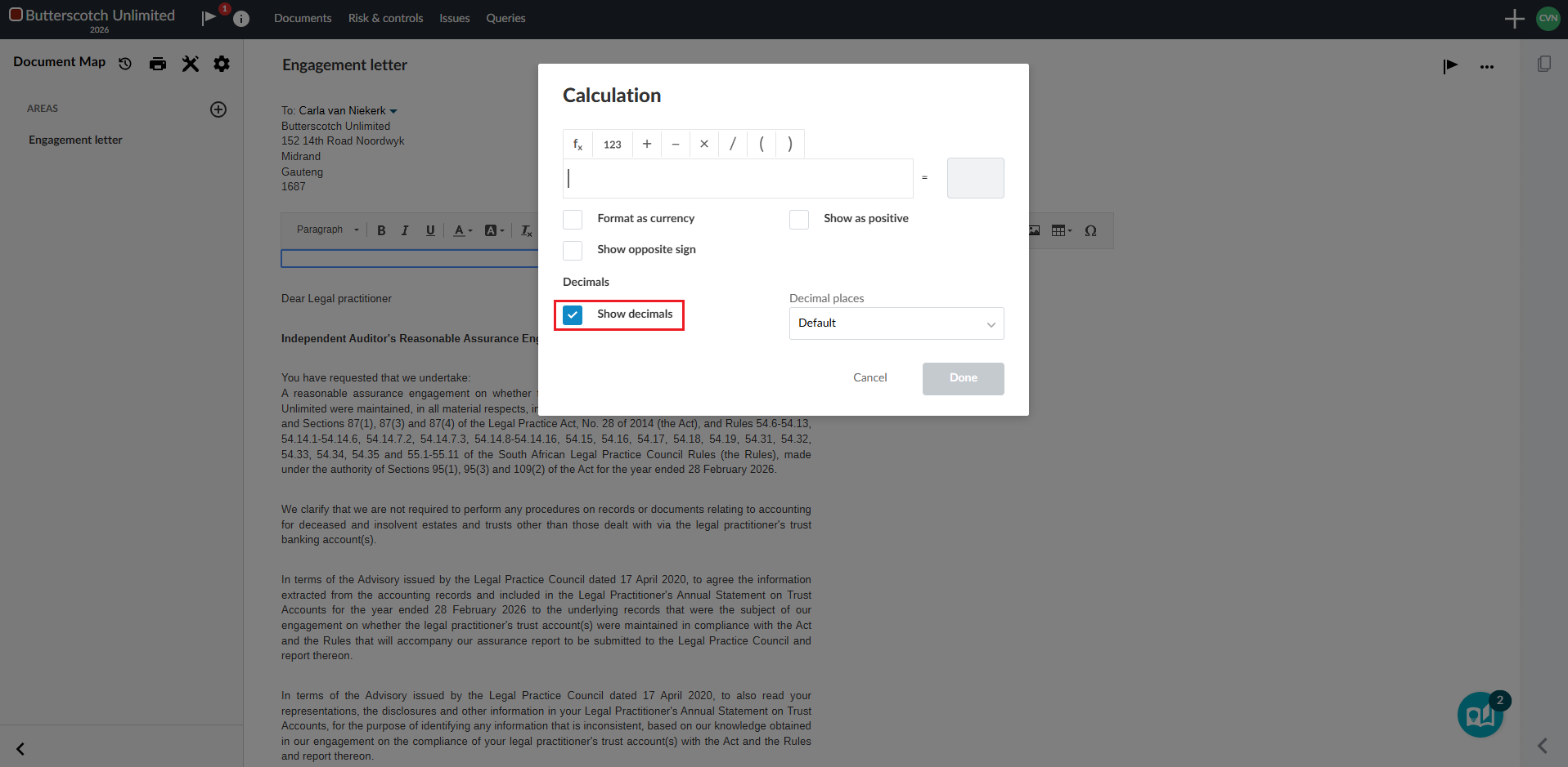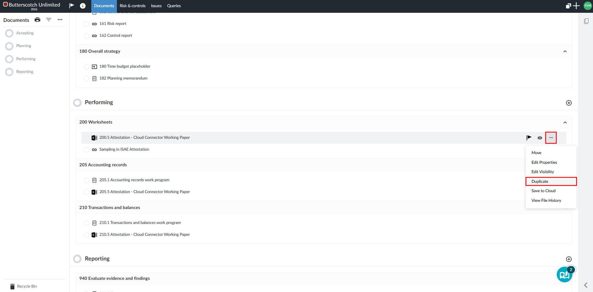 Note that this enhancement is only available for checklists, risks and the financial statements.