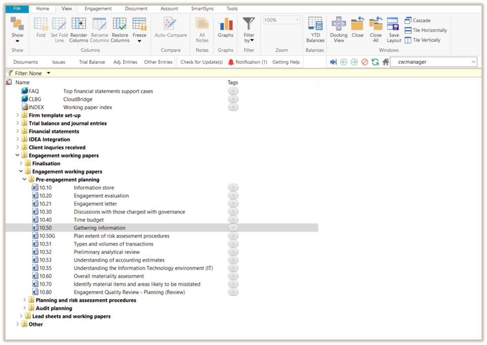 Document 10.50 – Gathering information can be found in the Pre-engagement planning folder in the Caseware document manager.