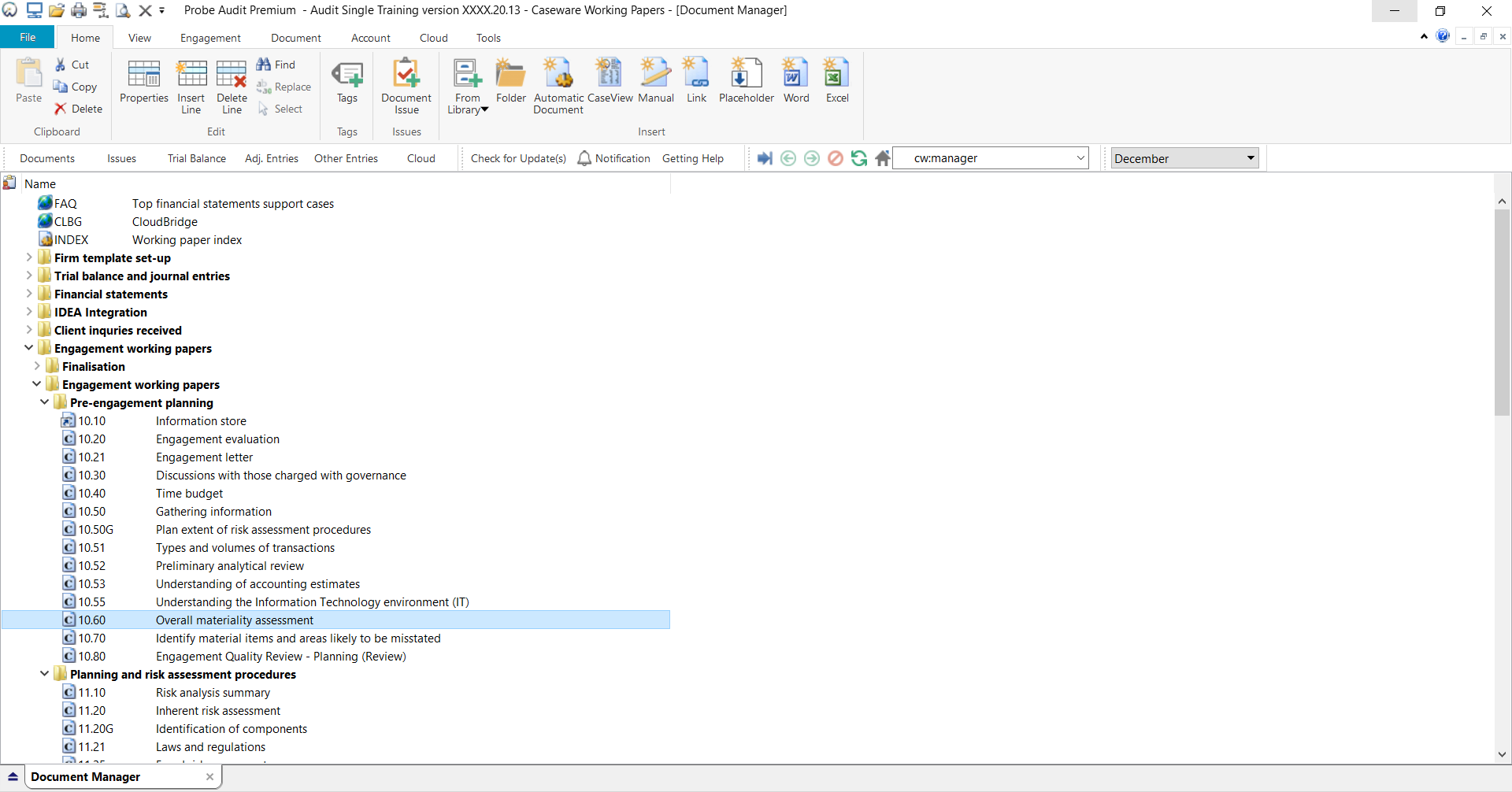 Document 10.60 can be found in the Pre-engagement planning folder in the Caseware document manager.