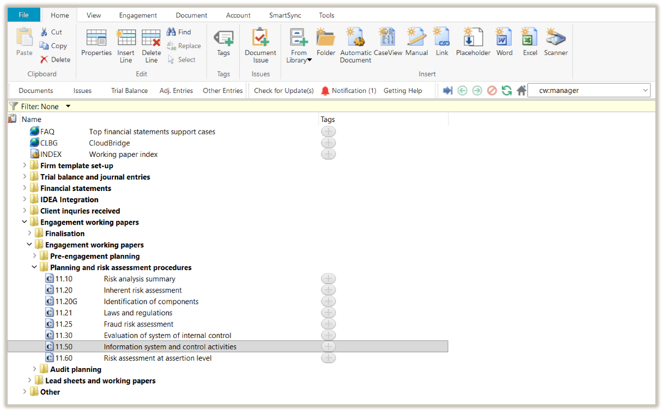 Document 11.50 Information system and control activities can be found in the Planning and risk assessment procedures folder in the Caseware document manager.